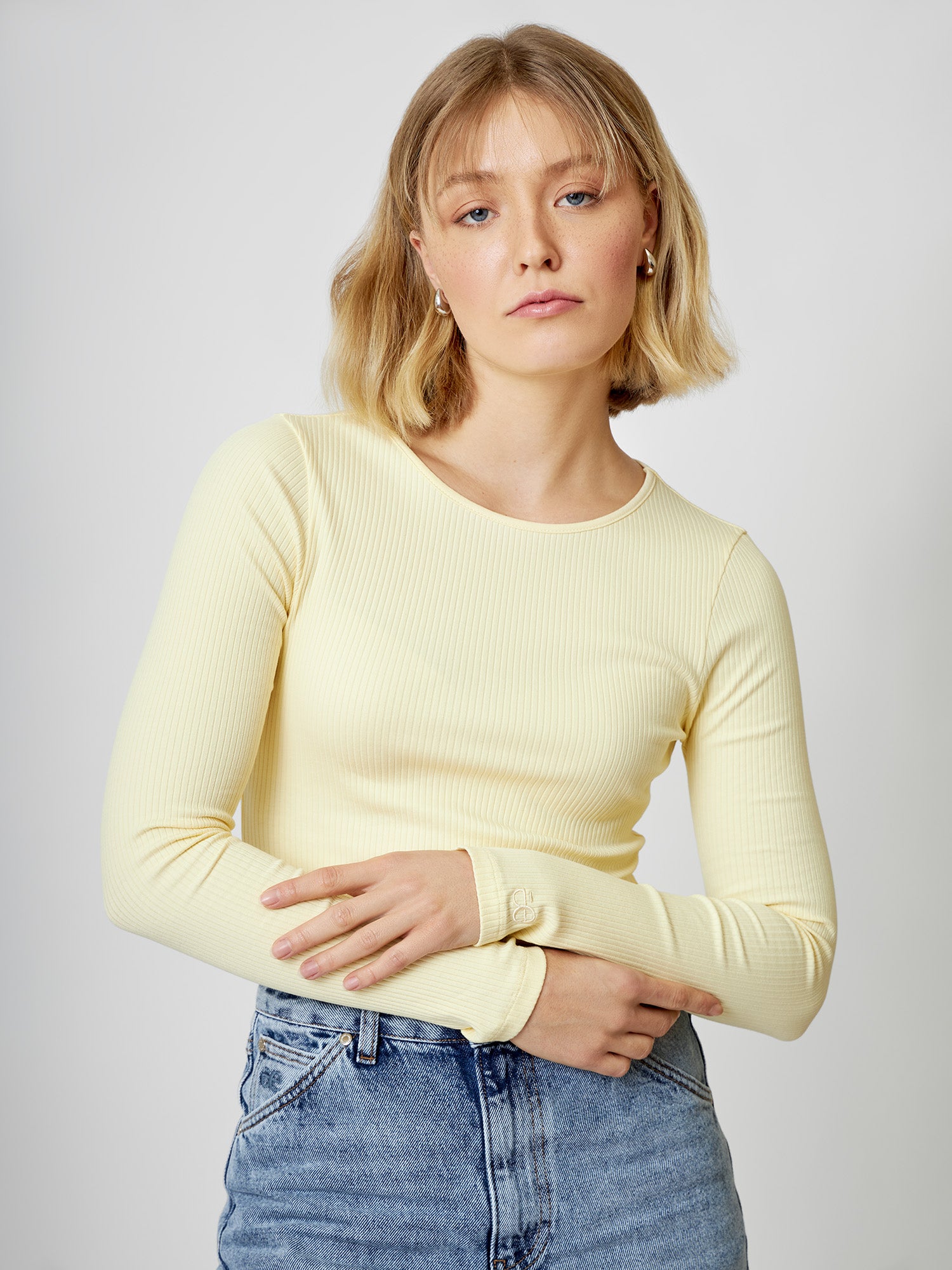 Alles andere als langweilig: LINNEA ist ein geripptes, enganliegendes Longsleeve in drei wunderschönen Farbvarianten: Weiß mit schwarzen Streifen, Butter Yellow und Light Grey melange – schlicht, aber mit dem gewissen Etwas. Das Stitching am Ärmel setzt einen feinen Akzent und macht das Shirt zu mehr als nur einem Basic.